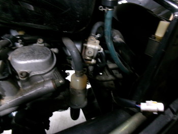 サイドカバーを取り外したことで燃料タンク下部のキャブレター、フィルター、燃料ポンプを確認することができました。